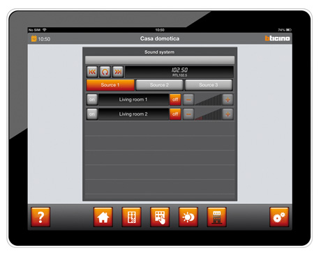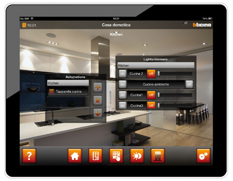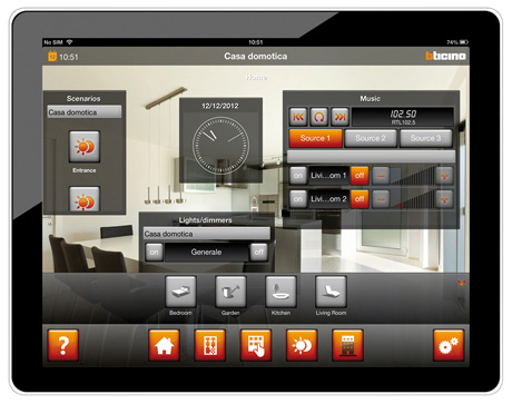 Grazie alla nuova applicazione per iPad sarà più semplice tenere sotto controllo le seguenti funzioni: illuminazione, automazione, scenari, termoregolazione a zone, diffusione sonora monocanale e multicanale.