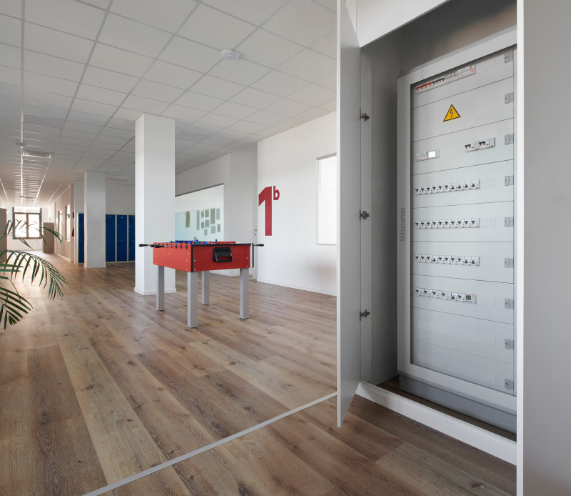 In linea con l’estetica moderna e luminosa dell’edificio, la scuola ha scelto di utilizzare la serie civile MatixGO in finitura bianca, perfettamente integrata negli spazi didattici. Un dettaglio funzionale e pulito che contribuisce all’armonia visiva degli ambienti e sottolinea la cura per ogni aspetto del progetto, dal comfort alla semplicità d’uso quotidiano.