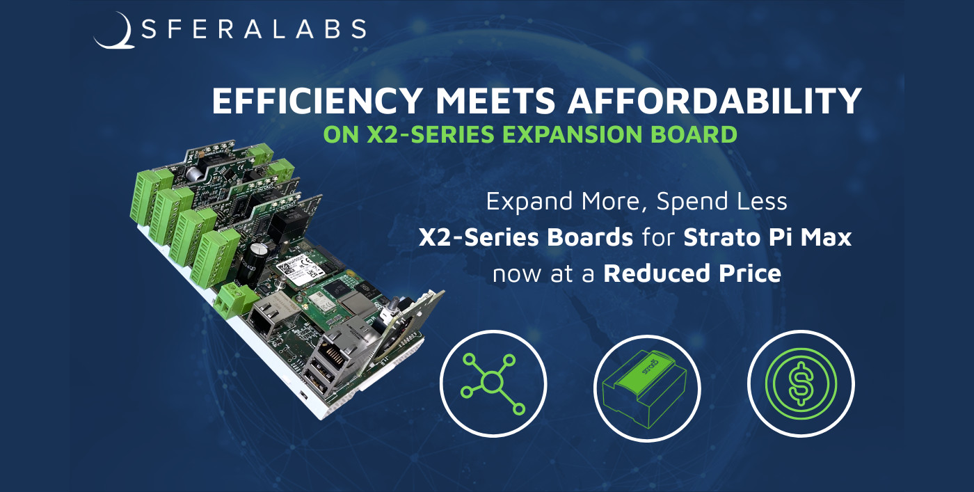 Sfera Labs è lieta di annunciare una riduzione di prezzo per le schede di espansione X2-Series progettate per il proprio Strato Pi Max, il controller modulare industriale basato su Raspberry Pi, pensato per automazione, IoT e edge computing.